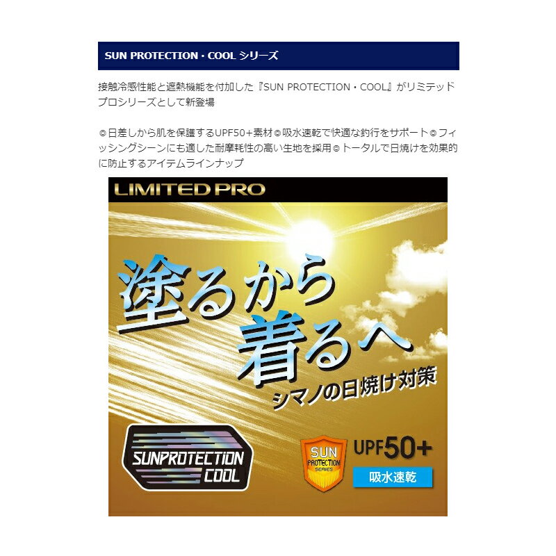 仕様表接触冷感性能と遮熱機能を付加した『SUN PROTECTION・CPPL』リミテッドプロシリーズ【技術特性】・冷却・遮熱・吸水速乾・UPF50+・SUN PROTECTION COOL・SUN PROTECTION【フィーチャー】■SUN PROTECTION・COOL シリーズ 接触冷感性能と遮熱機能を付加した『SUN PROTECTION・COOL』がリミテッドプロシリーズとして新登場 ◎日差しから肌を保護するUPF50+素材 ◎吸水速乾で快適な釣行をサポート ◎フィッシングシーンにも適した耐摩耗性の高い生地を採用 ◎トータルで日焼けを効果的に防止するアイテムラインナップ■リミテッドプロのプリント【素材】 ポリエステル96%、ポリウレタン4%【スペック】・サイズ:M・身長(cm):160-170・胸囲(cm):84-92・胴囲(cm):72-80詳細はこちら