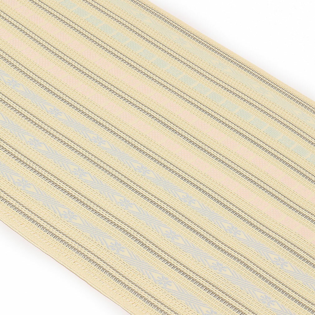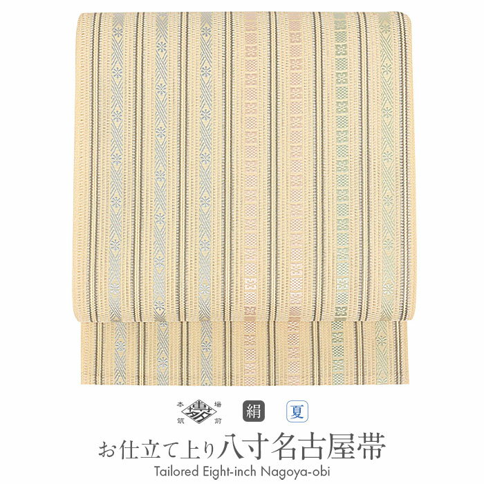 夏帯 博多帯 帯 筑前帯 博多八寸名古屋帯 正絹 黒木織物 < お仕立て上がり > 博多職人 羅八寸 名古屋帯 < クリーム /縞に有職文様 > 全通柄【 生成り 薄桃 夏 夏名古屋帯 夏八寸帯 袋名古屋帯 夏着物 単衣 薄物 訪問着 付け下げ 小紋 紬 カジュアル おび obi 】