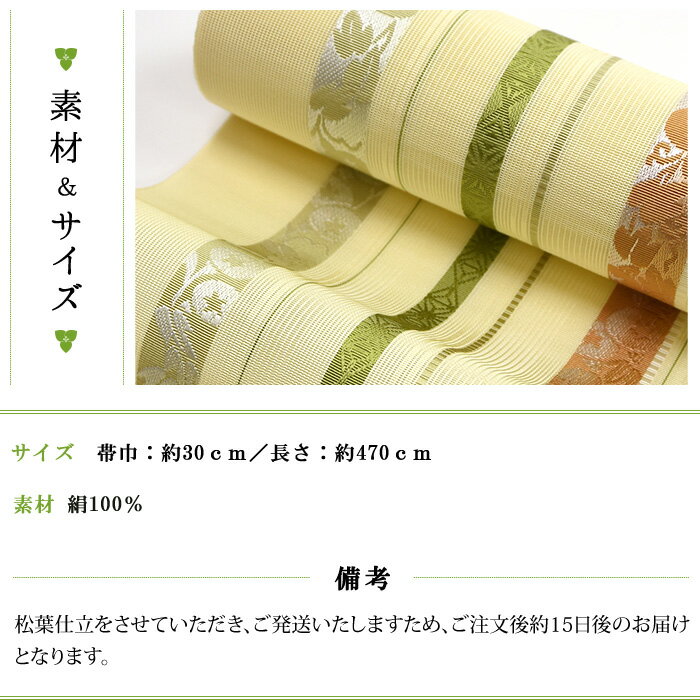 帯 夏帯 九寸 名古屋帯 <クリーム/葡萄唐草文様> 正絹 西陣 <洛陽織物> 仕立て上がり 【 帯 夏 夏用 夏名古屋帯 夏九寸帯 夏着物 単衣 薄物 訪問着 付け下げ 小紋 紬 浴衣 結婚式 茶席 通販 購入 】