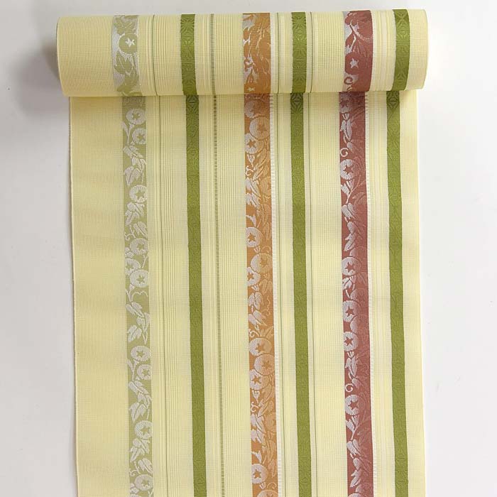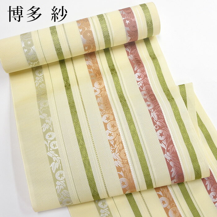 【博多織八寸なごや帯 LO-131】お仕立て上がり 八寸なごや帯 クリームイエロー 金糸 献上柄 博多帯 絹 着物帯 浴衣帯 小紋 紬 観劇 カジュアル 薄手 締めやすい 本場筑前 日本製 黒木 obi Japanese tradition