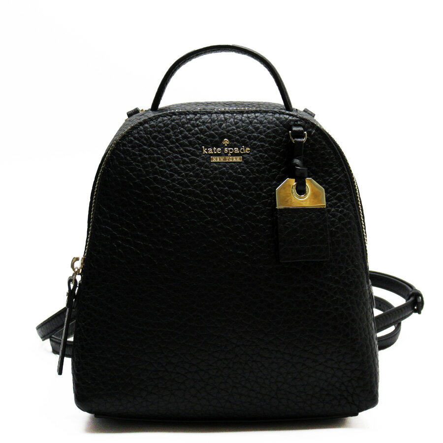 【新品同様】ケイトスペード kate spade リュック バックパック ブラックxゴールド レザー レディース 【中古】 - h23722f